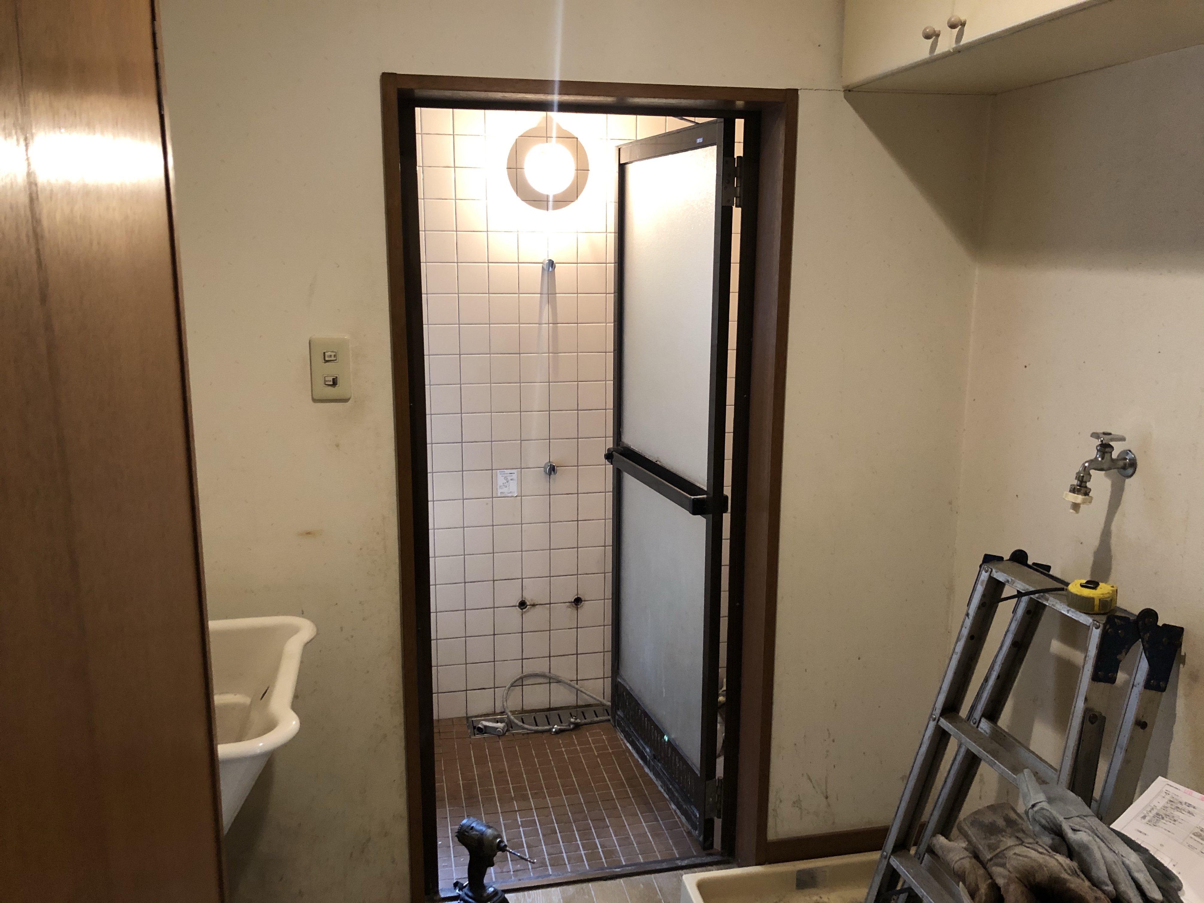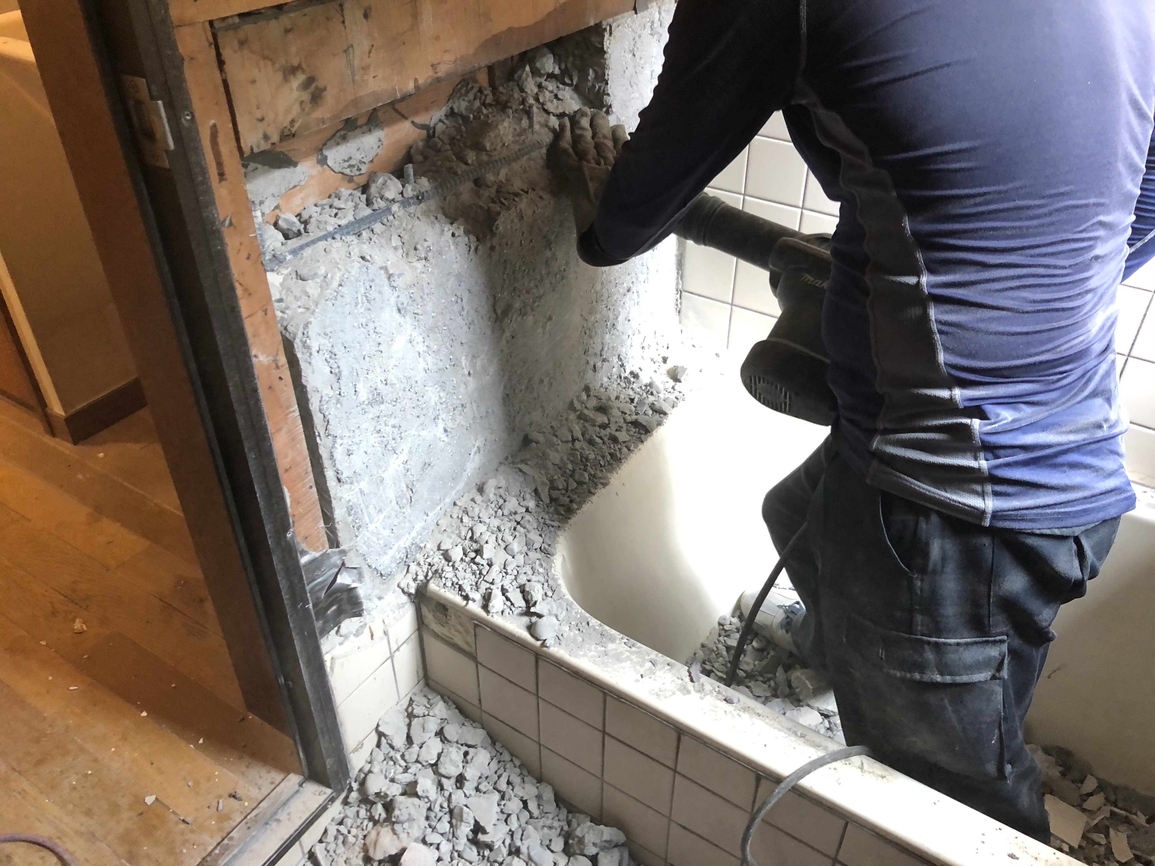 三鷹市木造2階建の、お風呂場の解体工事になります。在来造のお風呂を解体し、ユニットバスへリフォームとなります。