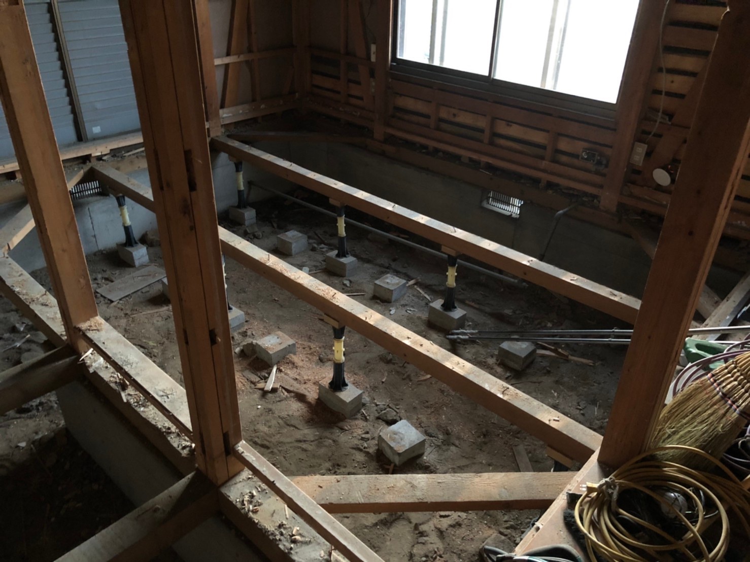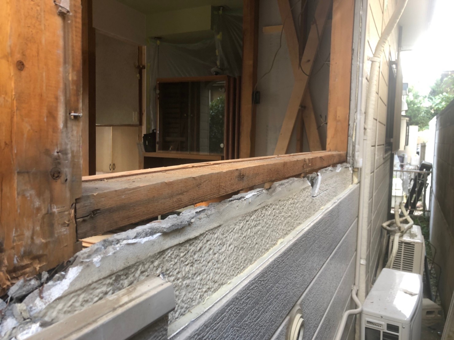 経年劣化による、部分的な解体工事になります。床面、壁面、窓枠などの撤去作業が中心です。