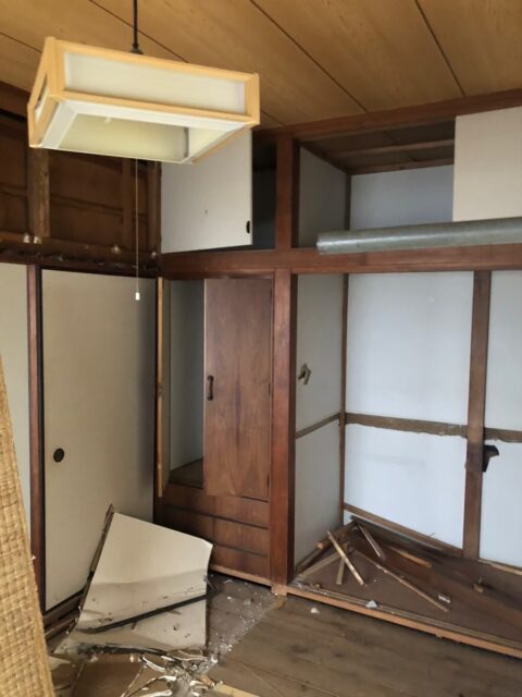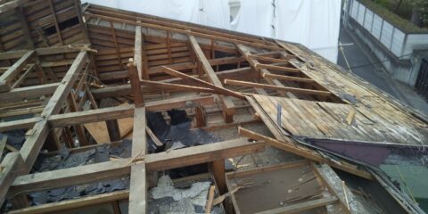 部屋内の解体が終了し、屋根の一部を手作業で解体します。