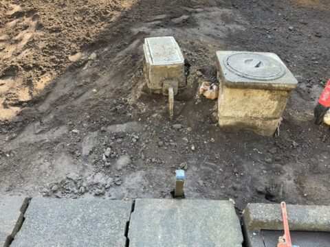 他のゴミが混ざらない様に、コンクリート基礎のみにします。地中から掘り起こしながら撤去していきます。