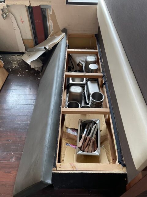 元レストランの店舗解体工事になります。まずは残置物を片付けていきます。